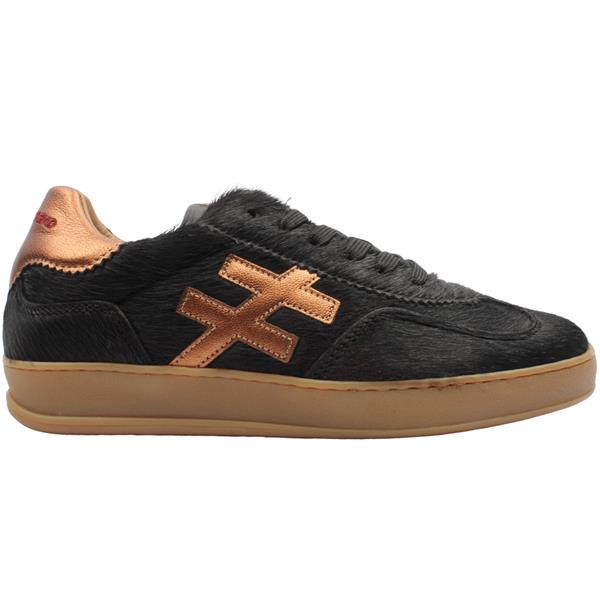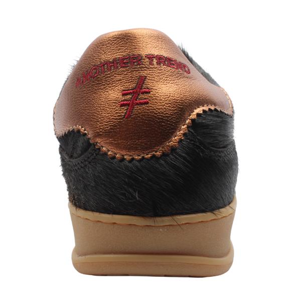 Step into bold style with these statement-making ladies trainers from Another Trend shoes. Crafted with a distinctive hairy-textured upper, they bring a fresh, fashion-forward twist to a classic silhouette. The deep black base is elevated with subtle bronze detailing, adding a touch of sophistication and edge to your everyday look. Complete with a removable insole for customizable comfort and a lace-up closure for a secure fit.