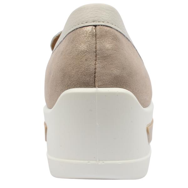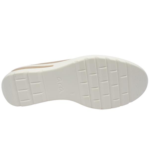 Step into casual elegance with these ladies low wedge shoes from Ara shoes, combining comfort, versatility and effortless style. Designed in a neutral cream/gold upper, these shoes bring a fresh twist to your everyday wardrobe. The slip on design makes them easy to wear, while the H wide fit ensures extra comfort and space for those who need a bit more room. Perfect for casual days out or polished weekend looks, the low wedge sole offers a subtle lift with excellent support.