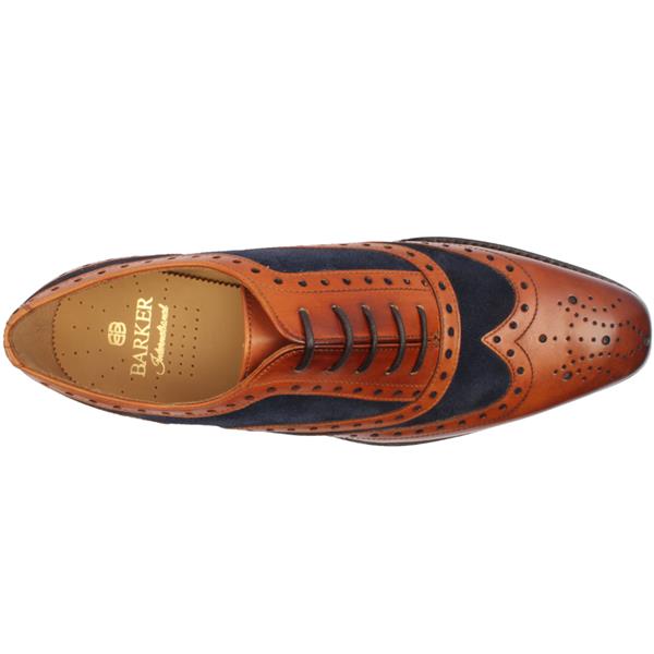 Men's shoes from Barker shoes. A modern interpretation of a classic brogue. Crafted with a premium leather upper, this brogue showcases intricate perforated detailing, adding a refined touch to its timeless appeal. Inside, a luxurious leather lining ensures all-day comfort and breathability. The half leather, half synthetic sole provides durability and flexibility, delivering a perfect balance of classic craftsmanship and modern functionality.