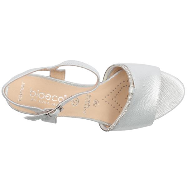 Brand: Bioeco By Arka Style: 4040 2103 Colour: Silver Closure: Ankle strap Heel Height: Approx 5.5cm Width: G Removable Insole: No Materials: Leather upper, leather lining & manmade sole