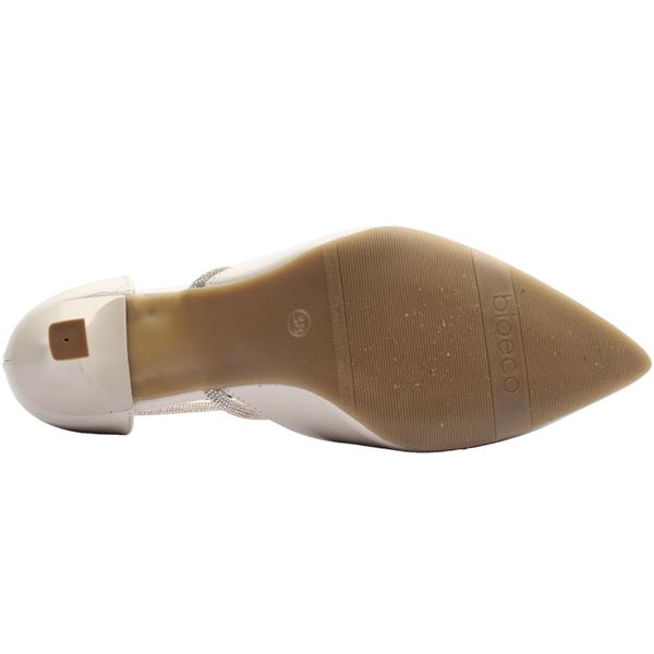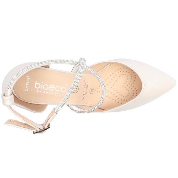 Step out in style with the womens heels from Bioeco shoes. Crafted with a luxurious pearl leather upper, this sophisticated design features a delicate criss-cross strap over the foot adorned with sparkling diamantes adding a refined touch of glamour. The sleek pointed toe creates a timeless, feminine silhouette. The adjustable buckle fastening ensures a secure and personalised fit.