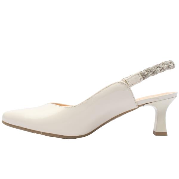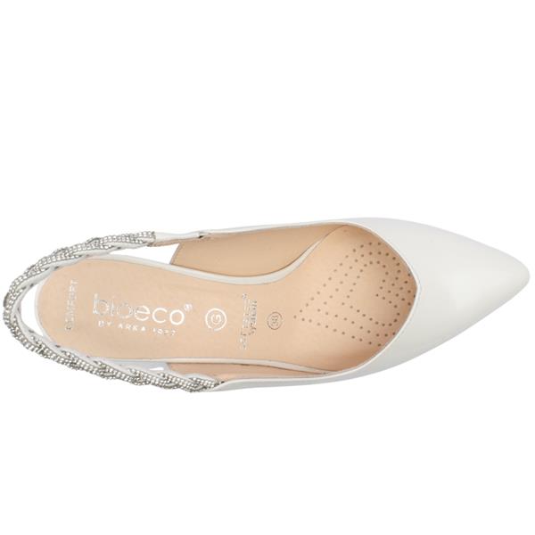 Add a touch of glamour to your look with the Bioeco Ladies Sling Back Shoe 4256. Crafted in cream patent leather, this stylish shoe features a sparkling silver diamanté slingback strap for a secure and eye-catching finish. The medium heel offers comfortable lift, while the cushioned Soft Step insole ensures lasting comfort throughout the day or evening. A flattering heart-shape at the front enhances the shape of the foot, and the “G†wide fitting provides extra room without compromising on style—perfect for special occasions or elegant everyday wear.