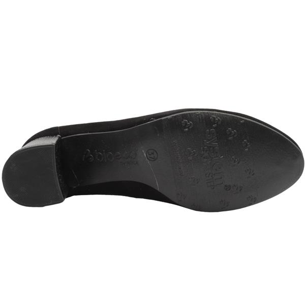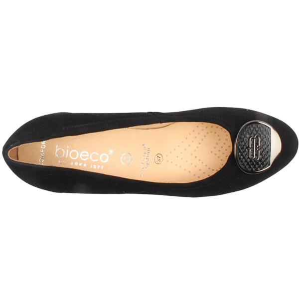 Brand: Bioeco Style: 6844 0026 Colour: Black Suede Closure: Slip on Removable insole: No Heel Height: Approx. 6cm Width: 'G' Width Materials: Leather Upper/lining & manmade sole