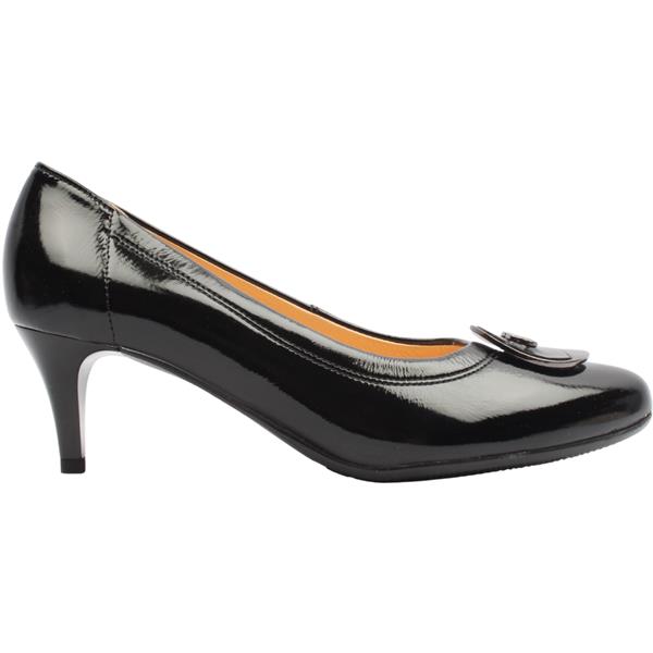 Step into timeless sophistication with this beautifully crafted women's heel from Bioeco shoes. Featuring a sleek black patent upper, this shoe exudes elegance. The delicate kitten heel adds just the right lift for all-day wearability.The innovative SoftStep System insole delivers superior cushioning and support.