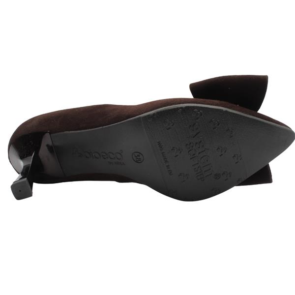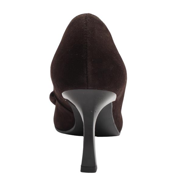 Elevate your elegance with these timeless brown high heels from Bioeco by Arka shoes. Designed in luxurious black suede leather, this classic court shoe features a graceful pointed toe adorned with a large bow accent, adding a touch of femininity to every step. Crafted with comfort in mind, the G width fit & mid-height stiletto heel offers just the right amount of lift, perfect for prolonged wear at a function. The cushioned insole and Softstep system ensure lasting comfort, while the sleek silhouette makes it a versatile choice.