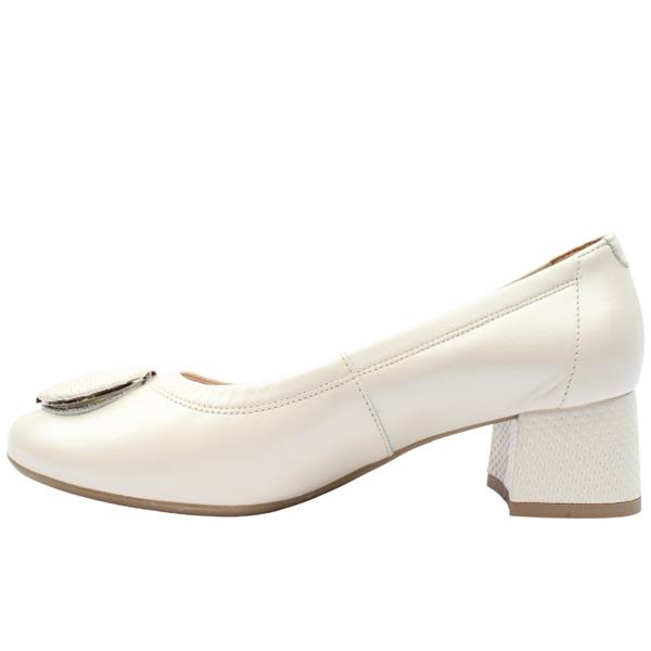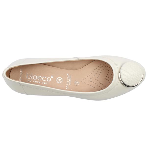Ladies low heeled court shoes from Bioeco By Arka Shoes in a versatile beige leather upper with simple brooch detail to the front of the shoe. With a H extra wide fitting style, these court shoes offer ample room and comfort for wider feet, ensuring a snug yet comfortable fit. The low sturdy block heel provides excellent support and stability, making these shoes ideal for all-day wear. Enjoy superior comfort with the Bioeco by Arka Softstep cushioned system, designed to provide optimal support and cushioning for your feet.