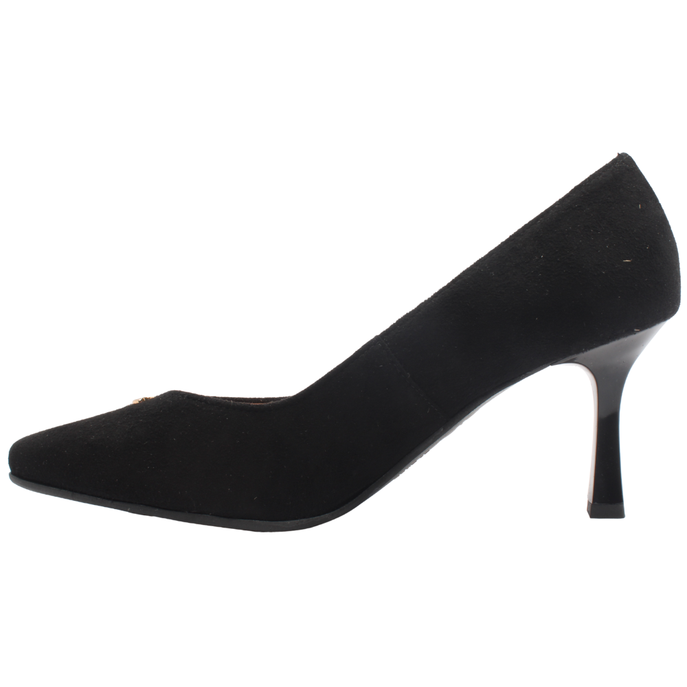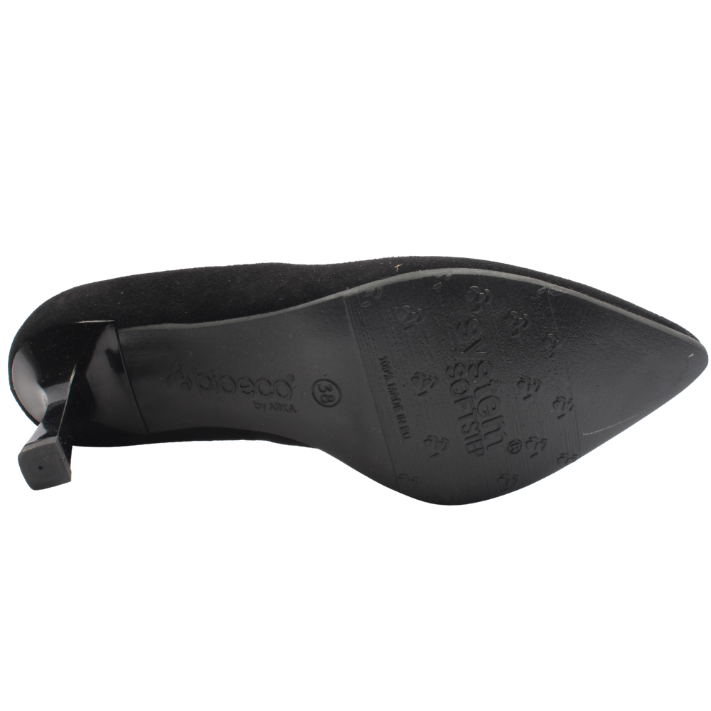 Stunning high heel court shoes from Bioeco By Arka shoes. The Bioeco By Arka 6543 shoes are the perfect fusion of elegance and comfort. Made from high quality, black suede leather with a subtle gold metal detail on the front to add a touch of luxury to this classic silhouette. The "V" shape at the front enhances the shoes shape and elongates the leg. Incorporating the Bioeco By Arka soft step system and G wide fit, these shoes provide exceptional comfort and support so you can wear them all day with ease.