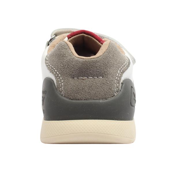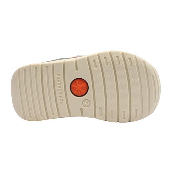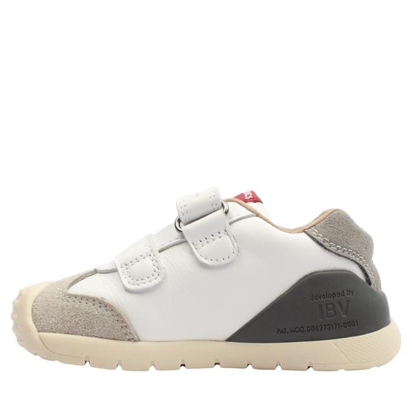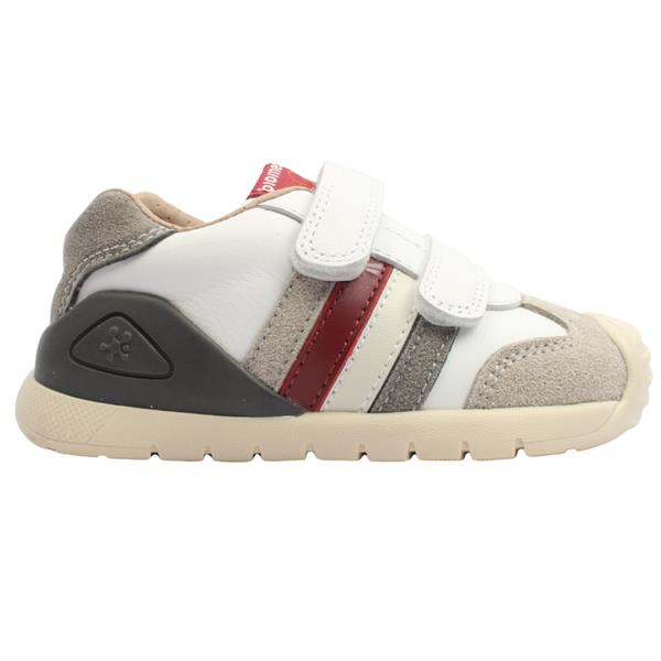 A stylish little boys shoes from Garvalin by Biomecanics Shoes. These shoes have a white upper with colourful stripe design. The double Velcro strap closure, with a fold down tongue allows for easy on and off. Thie shoe features a removable insole with a handy toe guide for watching your little ones growth ensuring a perfect fit. The reinforced heel & toe bumpers protect those busy little feet.