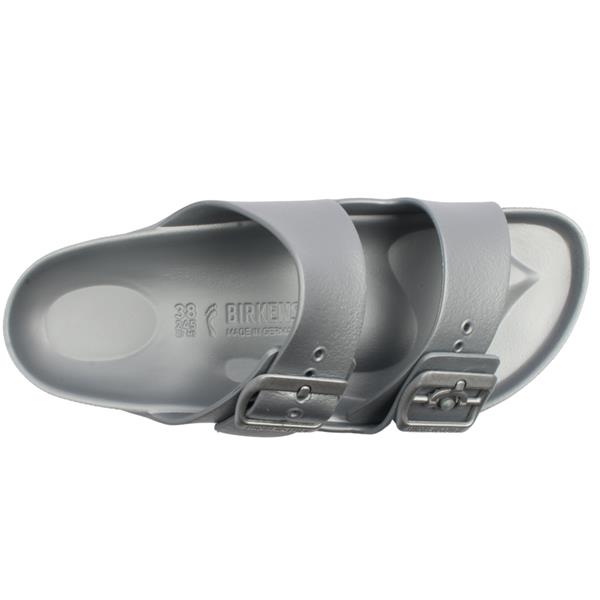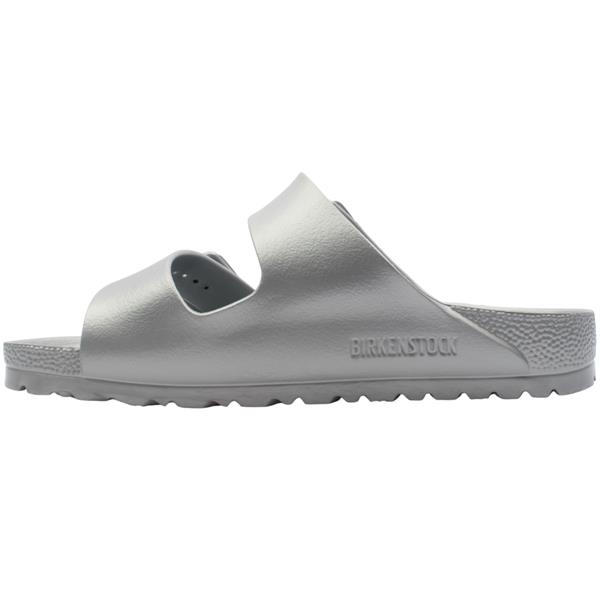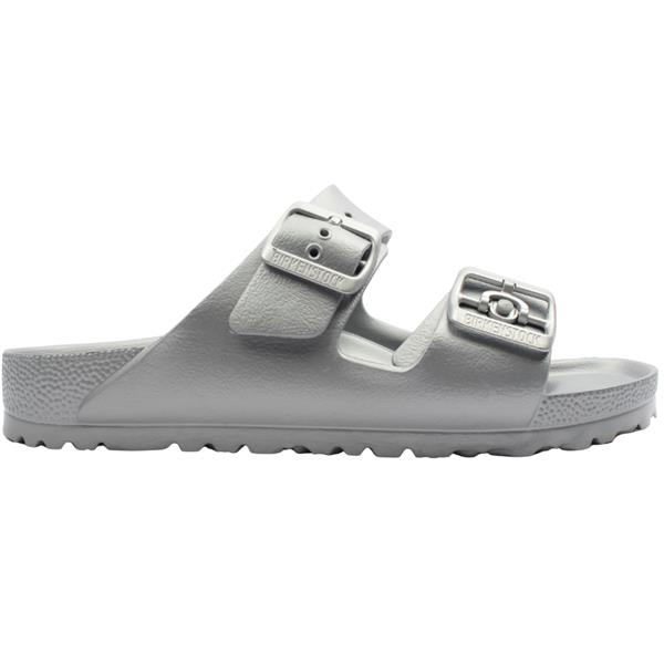 Brand: Birkenstock Style: Arizona EVA 1003491 Colour: Silver Fit: Narrow Fit Heel Height: Approx 3.5cm Closure: Slip On Materials: Synthetic upper, lining & sole