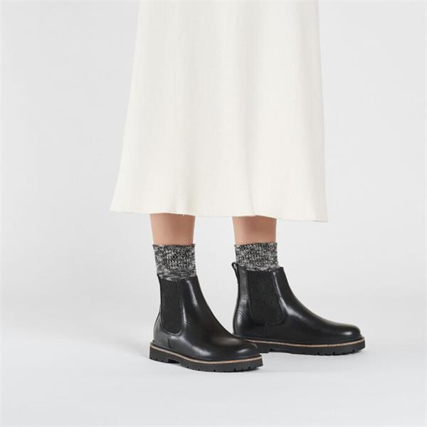 Step into style with the womens Chelsea boots from Birkenstock shoes. Made from high quality black leather this versatile ankle boot features double side gussets for easy slip on wear and a secure, flexible fit. Built on the Original BIRKENSTOCK Deep Blue Footbed the Highwood offers exceptional support, cushioning and stability with every step.