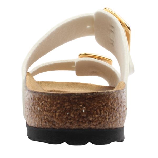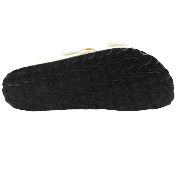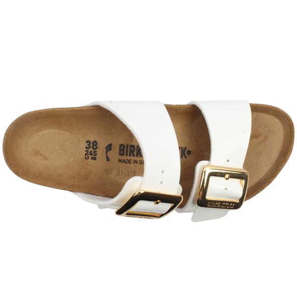These Ladies Birkenstock sandals 1029438 are designed with a white patent upper with gold buckles, proving that fashion and functionality can go hand in hand. These Birkenstock sandals are designed using a skin friendly, hard wearing synthetic material Birko Flor. The signature contoured footbed provides unparalleled comfort and support, making them perfect for all day wear.