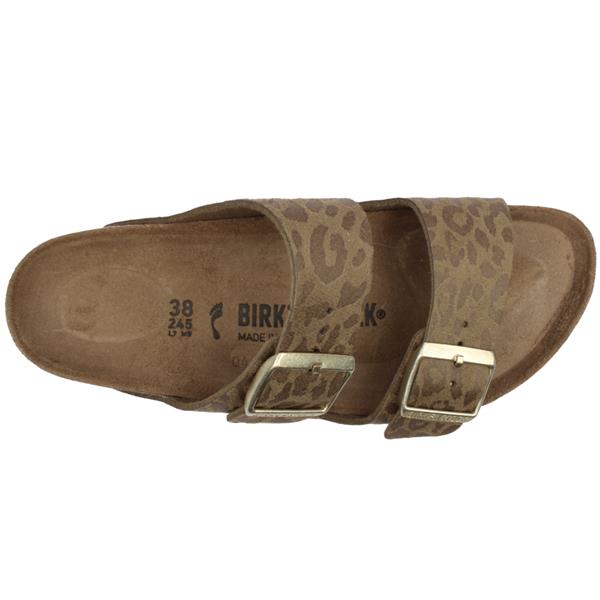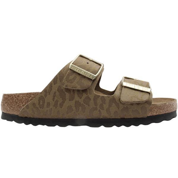 Step into optimal comfort with these womens sandals from Birkenstock shoes. Fashioned in a stylish light leopard pattern over a khaki base this design offers a subtle yet standout look. Two straps with gold-toned adjustable buckles allow for a customised fit and add a touch of elegance. Features Birkenstock’s legendary anatomically shaped cork-latex footbed designed for comfort and natural foot support.