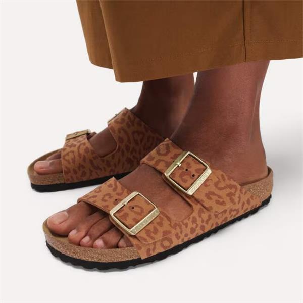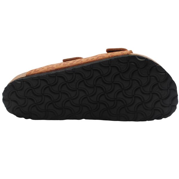 The Birkenstock Arizona 1031495 sandals are a classic from the Ladies Birkenstock sandals collection. This version features a subtle leopard print look on a tan base. The upper is made from a skin friendly synthetic material with a velvety feel. This simple sandal has a two strap upper & can be adjusted to suit most foot shapes. The magical cork footbed the conforms to the shape of your foot. This is a Regular Fit mule.