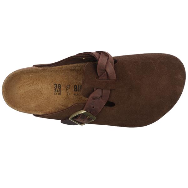 The Birkenstock Boston Braided Mule in Brown Suede combines timeless design with artisanal detailing for a refined everyday look. Crafted from soft, premium suede, the upper offers a velvety texture that molds comfortably to your foot over time. The standout feature is its braided leather strap with a distinctive twisted design, adding a subtle yet sophisticated accent to the classic silhouette. Designed in a Regular Fit, this mule features Birkenstock’s signature contoured cork-latex footbed, engineered to provide exceptional arch support, even weight distribution, and all-day comfort. The enclosed toe design makes it versatile across seasons, while the adjustable strap ensures a secure, personalized fit