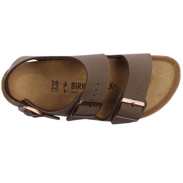 These Ladies Birkenstock sandals 063450 are designed with a heel strap for a secure fit and added stability. The Birkenstock Milano BS have a mocca brown leather upper. The signature contoured footbed provides unparalleled comfort and support, making them perfect for all day wear.