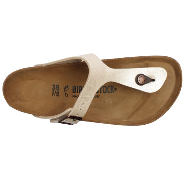 The Birkenstock Gizeh BS is a classic from the Ladies Birkenstock Sandals collection, a comfort legend and a fashion staple. These birkenstock sandals have a toe poster design with a pearl upper & can be adjusted across the instep for a more secure fit. It has a magicial cork footbed the conforms to the shape of your foot.