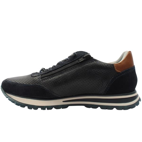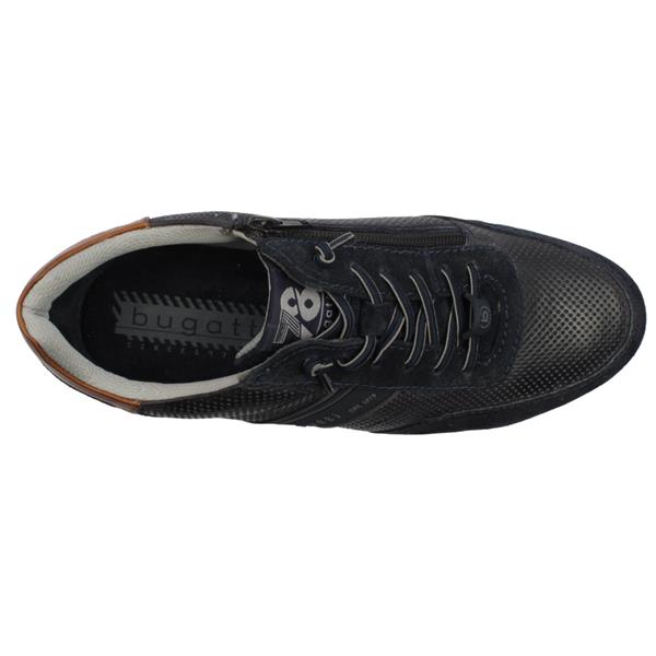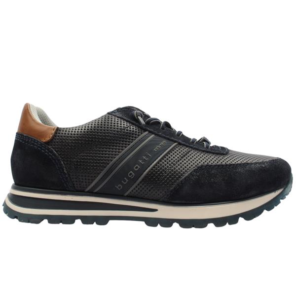 Brand: Bugatti Style: AG808 Colour: Navy Closure: Elastic Lace & Side Zip Heel Height: Approx 2CM Materials: Leather upper, textile lining & manmade sole