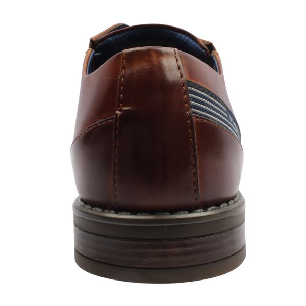 Step into refined style and all day comfort with the Ao505 Bugatti Mens suit shoes. Crafted with a smooth tan leather upper, this elegant design is elevated by a contrasting navy lace and heel trim for a modern, distinctive finish. Designed with comfort in mind, they feature a removable insole for customizable support. The comfort wide fitting allows extra room while elastic gussets provide easy wear and a flexible, secure fit, making these shoes ideal for long workdays or formal occasions. A perfect blend of classic sophistication and practical comfort