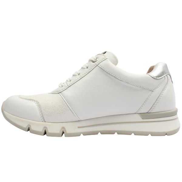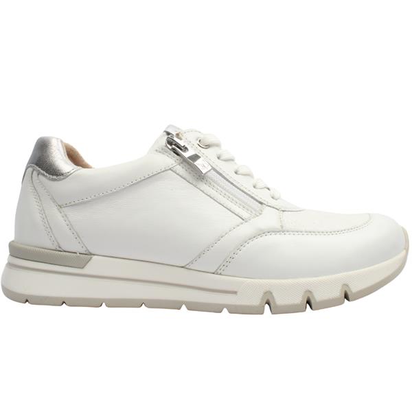 Experience the perfect blend of comfort and practicality with these Caprice ladies shoes. Featuring a sleek white leather upper combined with stretch material across the forefoot, this design offers both flexibility and support, ideal for sensitive or wider feet. Designed in an H fit for extra width, this style ensures a more generous, comfortable feel. The combination of lace-up and side zip closure allows for a secure fit with the added convenience of easy on/off access. Featuring a removable insole that provides cushioning with the option to insert custom orthotics if needed.