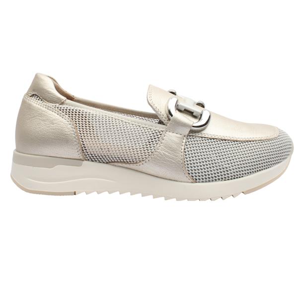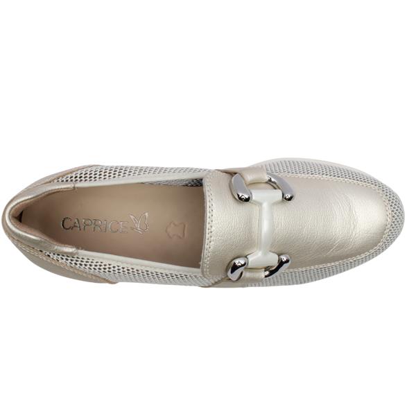 Step into effortless style and comfort with these ladies slip on shoes from Caprice shoes in shimmering pearl upper. Designed with breathable mesh detailing, this shoe keeps your feet cool and comfortable all day. The soft leather insole provides a cushioned feel, while the elegant buckle detail on the front adds a touch of sophistication. Perfect for casual outings or dressing up a relaxed look, this slip-on combines convenience, comfort, and chic design in one.
