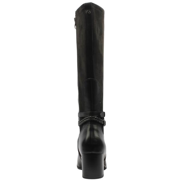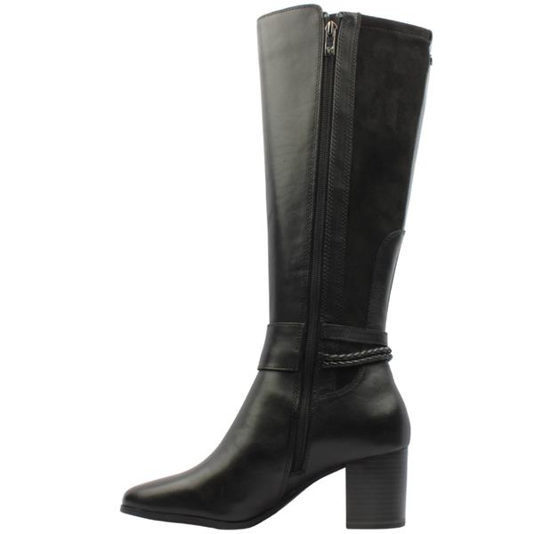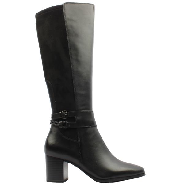 Step into timeless elegance with the women’s knee-high boot from Caprice shoes. Crafted with a sleek black leather and suede combination, this boot offers a sophisticated look perfect for any occasion. The sturdy block heel provides comfortable elevation. Featuring subtle buckle detailing around the ankle, this boot blends style and practicality effortlessly.