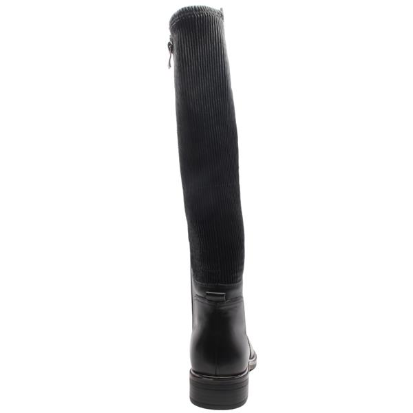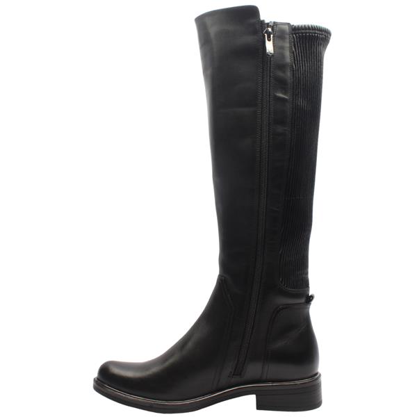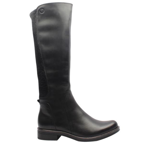Womens kneehigh boots from Caprice shoes. This boot has a black leather upper with a black elasticated calf area. This boot is a "G" width fitting style and the elasticated panel makes it a wider fit in the calf area. A stylish and practical option for your wardrobe.