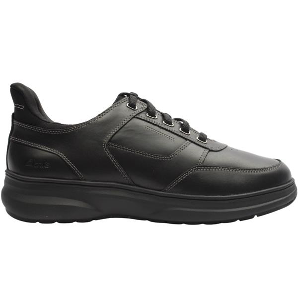 Brand: Clarks Style: Mullan Easy Colour: Black Removable Insole: Yes Closure: Lace Width: 'H' Fitting Materials: Leather/Textile Upper, Textile Lining & insole, Manmade Outsole.