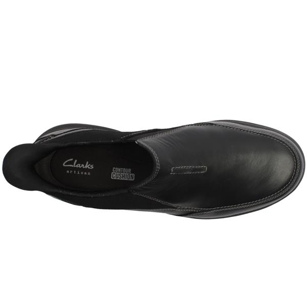 Step into comfort in these Wide fitting mens shoes from the Clarks shoes range, crafted from a premium black leather upper. Clarks Mullan Step is a modern slip on shoe crafted for everyday wear and all day comfort. Slip these shoes on with ease thanks to the easy entry heel construction and the elasticated side gusset. They are a H wide fitting so offer ample space & extra comfort for those who need it.