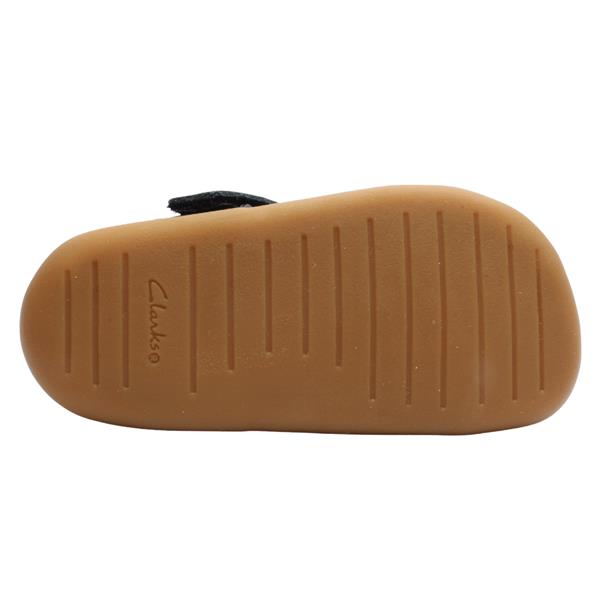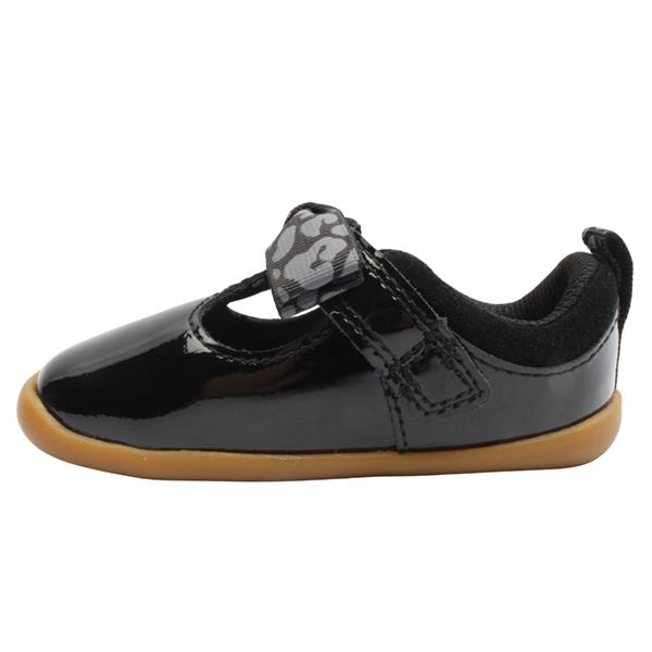 These Clarks Prewalkers for girls are a cute and practical choice for little ones taking their first steps. Made from a premium soft black patent leather with a flexible rubber sole that wraps toes for added protection. The t-bar Velcro strap offers a secure fit while the rubber flex-grooved sole enhances natural movement whilst offering grip for those all important first steps.