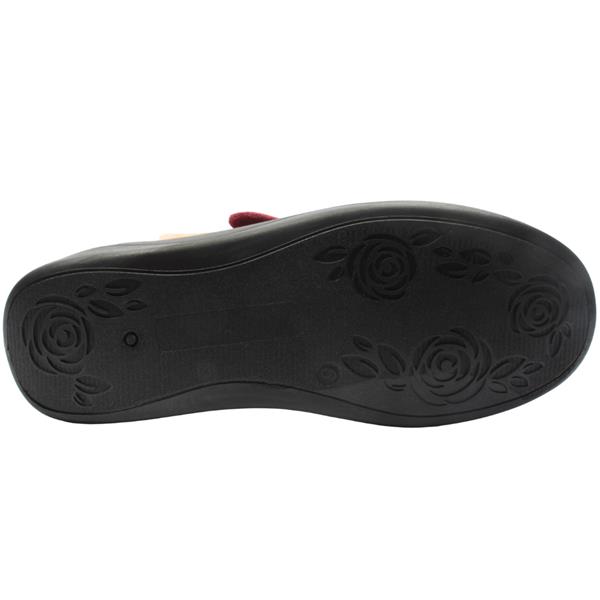 Brand: Cosy Toes Style: Holly Colour: Burgundy Closure: Velcro strap Removable Insole: Yes Width: Wide Fit Heel Height: Approx 2cm Materials: Textile Upper, Textile Lining & Manmade OutSole