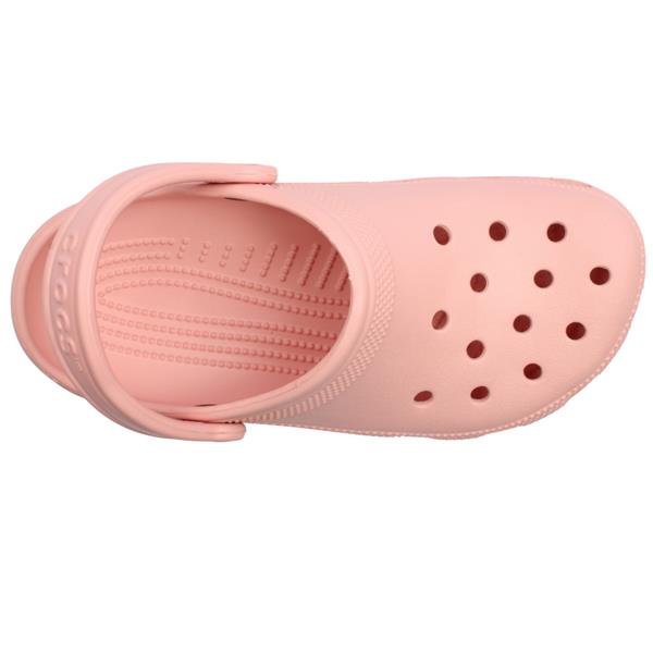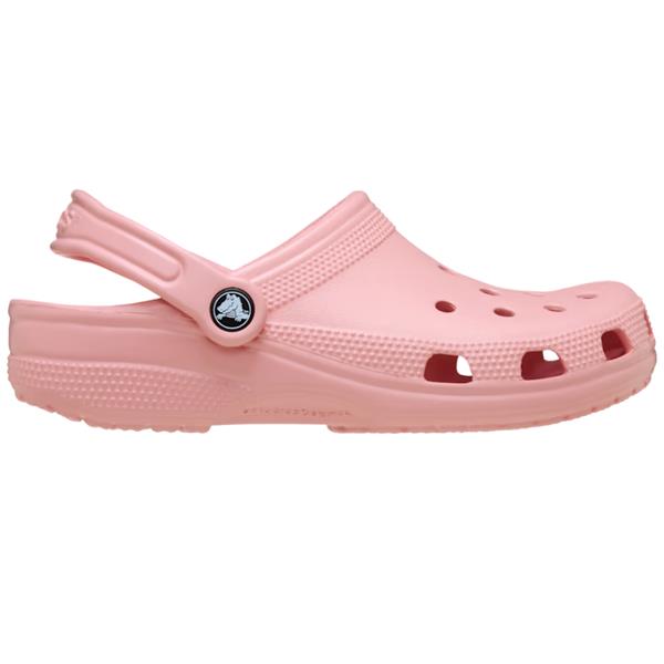 Ladies Crocs sandals in powder pink with punched hole upper and back strap which can be used as a sling back or pushed forward and used as a mule. The Classic Crocs 10001 style is a must have in your summer wardrobe. Lightweight, water-friendly and easy to clean, perfect for everyday wear