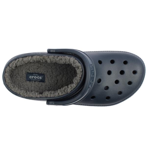 Brand: Crocs Style: 203591 459 Classic Lined Clog Colour: Navy Grey Closure: Slip on Materials: Synthetic Upper, Lining & Manmade Sole