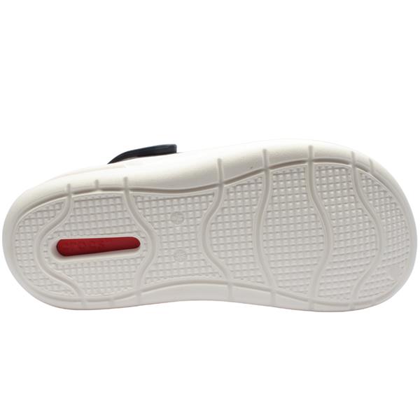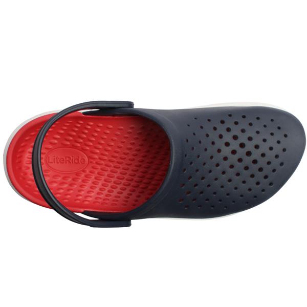Mens Crocs sandals with a punched hole upper and back strap which can be used as a sling back or pushed forward and used as a mule. Designed with a soft red insole lining and white outsole, this croc is a must have this summer!