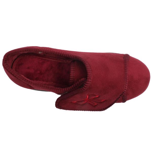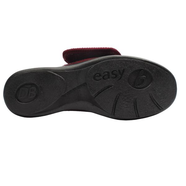 Step into cosy comfort with these Ladies wide fitting slippers from DB Shoes - Style 71556R Keeston. Crafted from a soft upper in burgundy. Designed to open up wide and be easy to slip on and with adjustable Velcro strap. Featuring a shoe stiffener at the heel and flat sole this style offers more support than a traditional slipper. The 2V fitting makes them ideal for people from 2E-4E wide fits and they have a removable cushioned insole which can make them deeper if required. This style has no seams in the toe box making for an extremely comfortable wear. Machine washable to 30 Degrees.