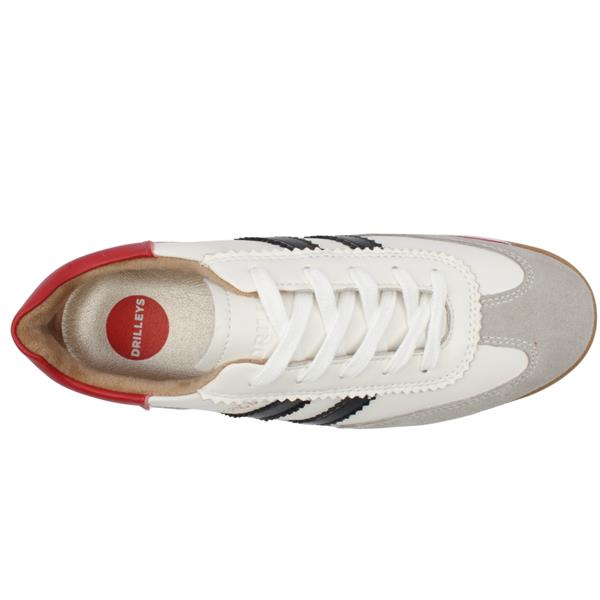 Brand: Drilleys Style: Seventy Three Colour: White with red Removable Insole: Yes Closure: Lace Width Fitting: Average Materials: All Manmade