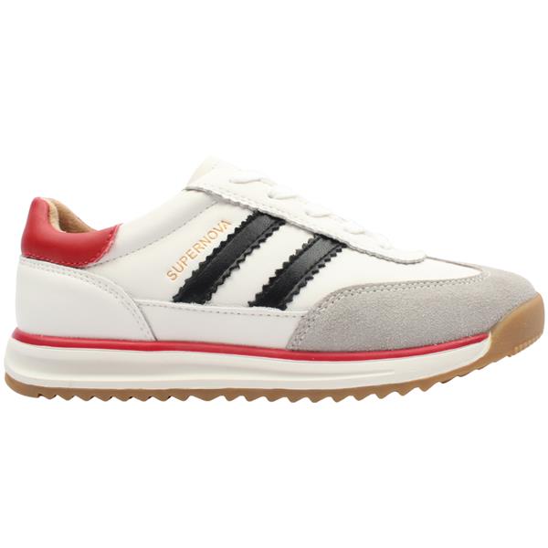 Make a statement in the Drilleys Super Novas ladies runner. Designed in crisp white with striking grey, navy, and red detailing, this stylish trainer offers a sporty, retro-inspired look. Lightweight and comfortable, they are perfect for everyday wear while adding a pop of colour to casual outfits. A versatile runner that blends comfort with standout style.
