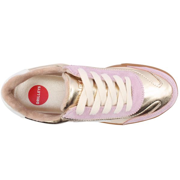 Brand: Drilleys Style: Eighty Colour: Gold with Lilac Removable Insole: Yes Closure: Lace Width Fitting: Average Materials: All Manmade