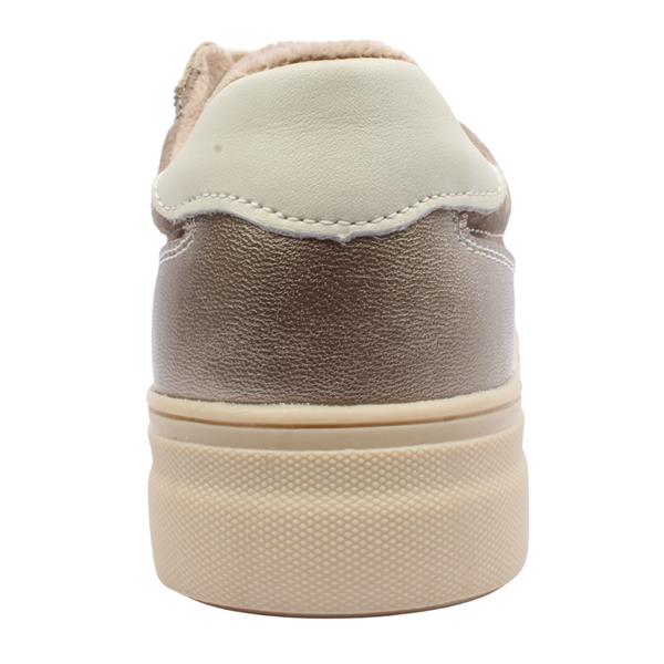 Step out in style with womens trainers from Drilleys shoes. Crafted with a soft taupe suede leather upper this trainer features gold accents for a subtle touch of glamour. The beige V branding and heel detail add signature character while the chunky sole delivers modern flair and supportive comfort. A classic lace up closure ensures a secure and personalised fit.