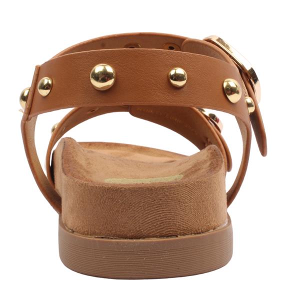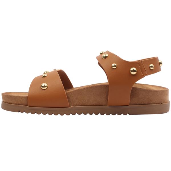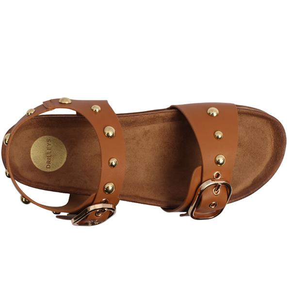 Stylish Ladies Sandals from Drilleys Shoes. These versatile Tan sandals have gold stud detailing. The padded insole will keep you comfortable for all day wear. The buckle closure ensures a secure fit.