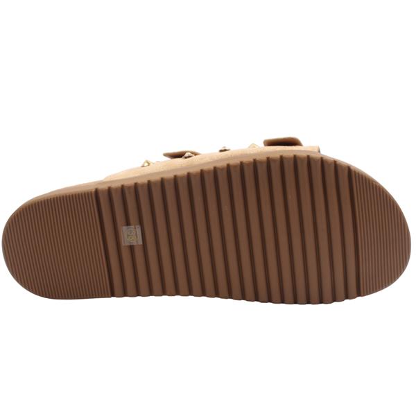 Ladies Sandals from Drilleys Shoes, Ninety Seven. These slip on mules have a soft beige upper with stud & jewel detailing. The soft padded insole will keep you comfortable for all day wear. The buckle closure ensures a secure fit across the instep.