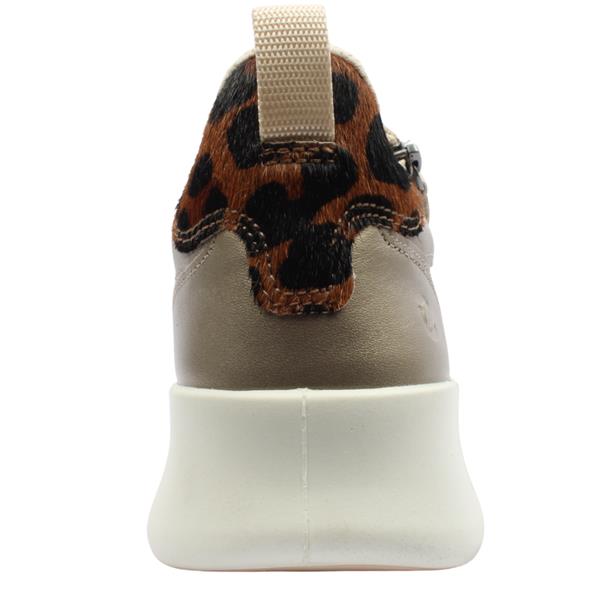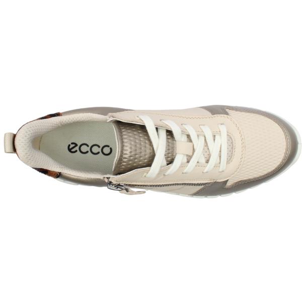 Step up your everyday shoe game with the ladies trainers from Ecco shoes. The striking beige and gold upper is elevated with a leopard print heel cap that adds bold and stylish contrast to a classic silhouette. Designed for easy wear and a personalised fit this trainer features both lace and zip closures. The Dual Fit system with a removable lower insole lets you tailor the width giving you extra room when you need it for all day comfort. Featuring the signature ECCO FLUIDFORM Technology for a natural fit and feel