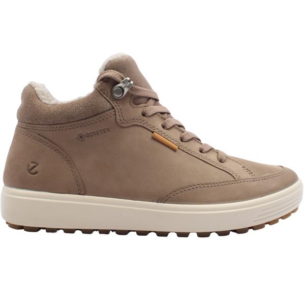 Embrace comfort and durability in any weather with the ECCO Soft 7 Tred W Warm GTX Boot. Designed in a versatile taupe tone, this ladies lace-up boot combines Scandinavian style with premium functionality. Featuring GORE-TEX waterproof technology to keep feet dry, a removable insole for personalized comfort, and a warm lining for cozy wear during colder days. The rugged yet flexible sole ensures excellent grip and support, making it the perfect choice for both urban adventures and weekend escapes