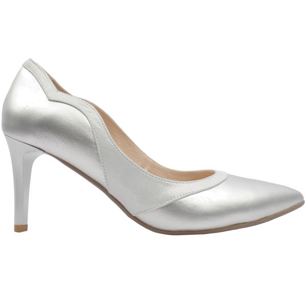 Step into elegance with these womens heels from Emis shoes. Crafted with a shimmering silver leather upper, it features a lighter silver design that traces the side and outlines the foot for a touch of subtle contrast. The pointed toe adds a sharp, stylish edge, while the thin heel offers a graceful lift.