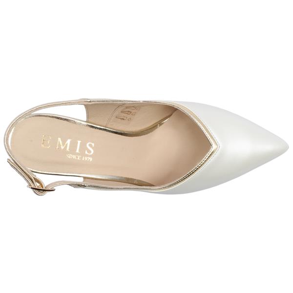 Brand: Emis Style: 8414 F082 Colour: Pearl Closure: Adjustable Sling Back Removable Insole: No Heel Height: Approx 6cm Materials: Leather upper, leather lining & insole, manmade sole