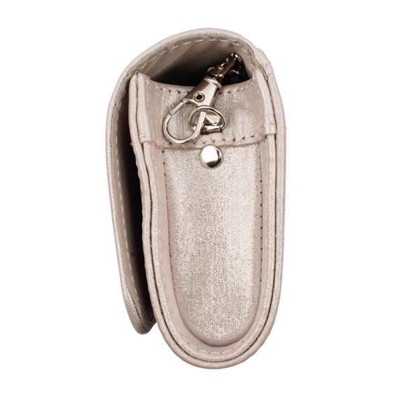 Add subtle sparkle to your look with this elegant womens Emis clutch bag. Designed with a beautiful taupe coffee sparkle finish this bag brings a touch of glamour. Crafted with a genuine leather upper it offers both quality and style. The detachable silver chain strap allows you to carry it as a classic clutch or wear it over the shoulder for added convenience.