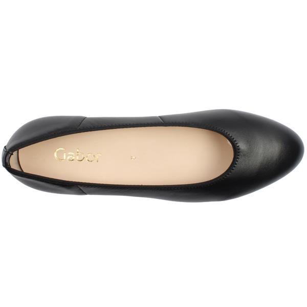 Brand: Gabor Style: 71.421.27 Colour: Black Closure: Slip on Heel: Approx 2cm Removable Insole: Yes Materials: Leather Upper, Leather Lining & Manmade sole