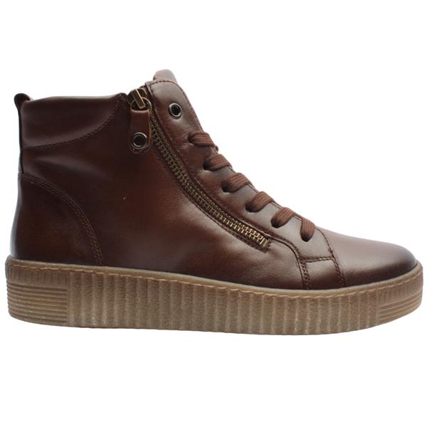 Step up your style game with these chic hi-top boots from Gabor Shoes. Crafted from rich brown leather, these boots effortlessly blend casual style with everyday practicality. Designed with both fashion and function in mind, they feature a classic lace up front for a personalized fit, complemented by a convenient side zip for easy on-and-off. Blending the casual comfort of trainers with the style of high-fashion boots, this pair is your new go to for standout casual style.