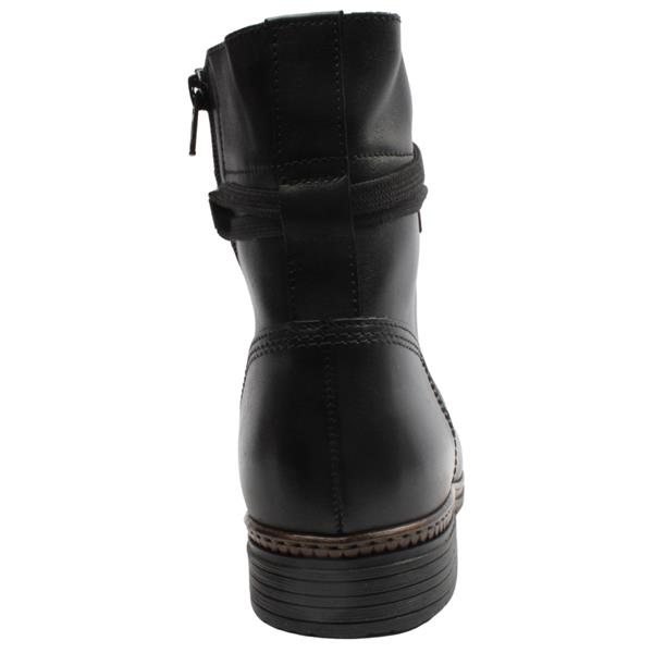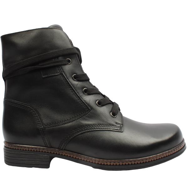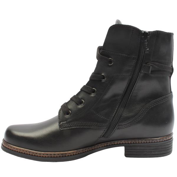 Combine style and comfort with the Gabor military-inspired ankle boot 74674 in soft black leather. Featuring lace-up detailing at the ankle and a convenient side zip, these boots are easy to put on and take off while adding a stylish edge. A warm lining keeps feet cosy, and the contrasting brown rand adds a subtle touch of character. Perfect for everyday wear, these boots blend practicality with modern, timeless design.