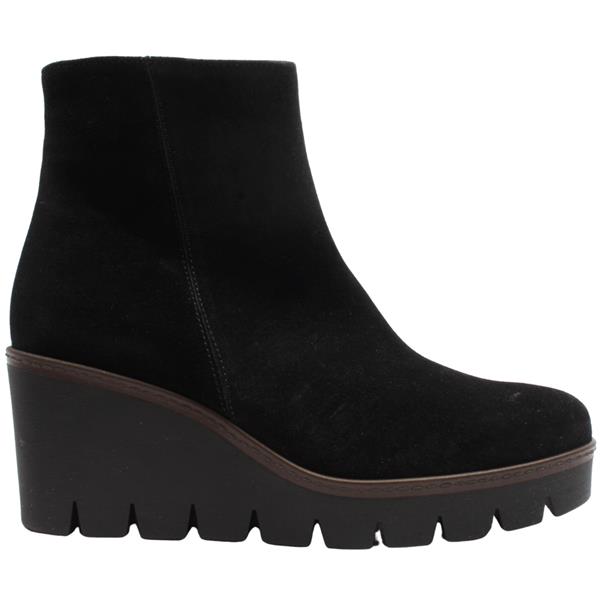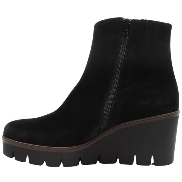 Add a touch of elegance to your wardrobe with these ladies black suede leather wedge ankle boots from Gabor Shoes. Crafted from soft, premium suede leather, these boots offer a rich texture and timeless appeal. The wedge heel delivers comfortable lift and support, making them perfect for all-day wear. A versatile style that pairs effortlessly with both casual and dressy looks.