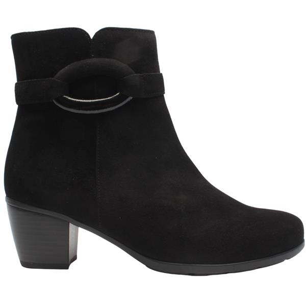 Step into style and comfort with womens ankle boots from Gabor shoes. Designed with a soft black suede leather upper, it features a subtle circular side detail for added texture and interest. A practical side zip ensures easy on-and-off. The Gabor Best Fitting insole provides superior comfort and support. Finished with a slight heel for just the right amount of lift